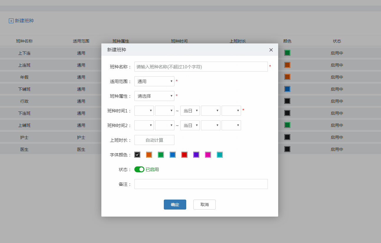 3. 班种可以自定义;内置的班种如果不喜欢,也可以修改或者直接删掉;均在班种编辑页面操作。