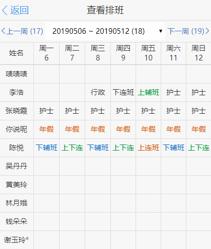 1. 选中左边表格框,然后再点击右边的班种,即可排班;上周以前的日期不可再编辑。